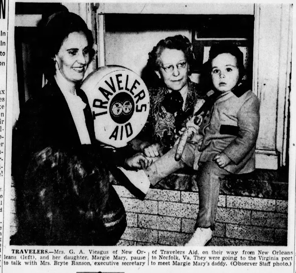 Many others find light on their problems where the Travelers Aid lamp burns. Old ladies shunted about between one child and another…sick people who must be moved by wheel chair or stretcher…children traveling alone…men looking for jobs…stranded girls, who “don’t know the war’s over”… ex-service men who were stationed here during the war, or who were here for maneuvers, and would “like to live in Charlotte”…runaway boys…blind or crippled travelers…any who need special care or help. “One type we see often,” Mrs. Ranson said, “is the man who just has to be back tomorrow to sign up for his unemployment compensation, no matter how fare ‘back’ is.”