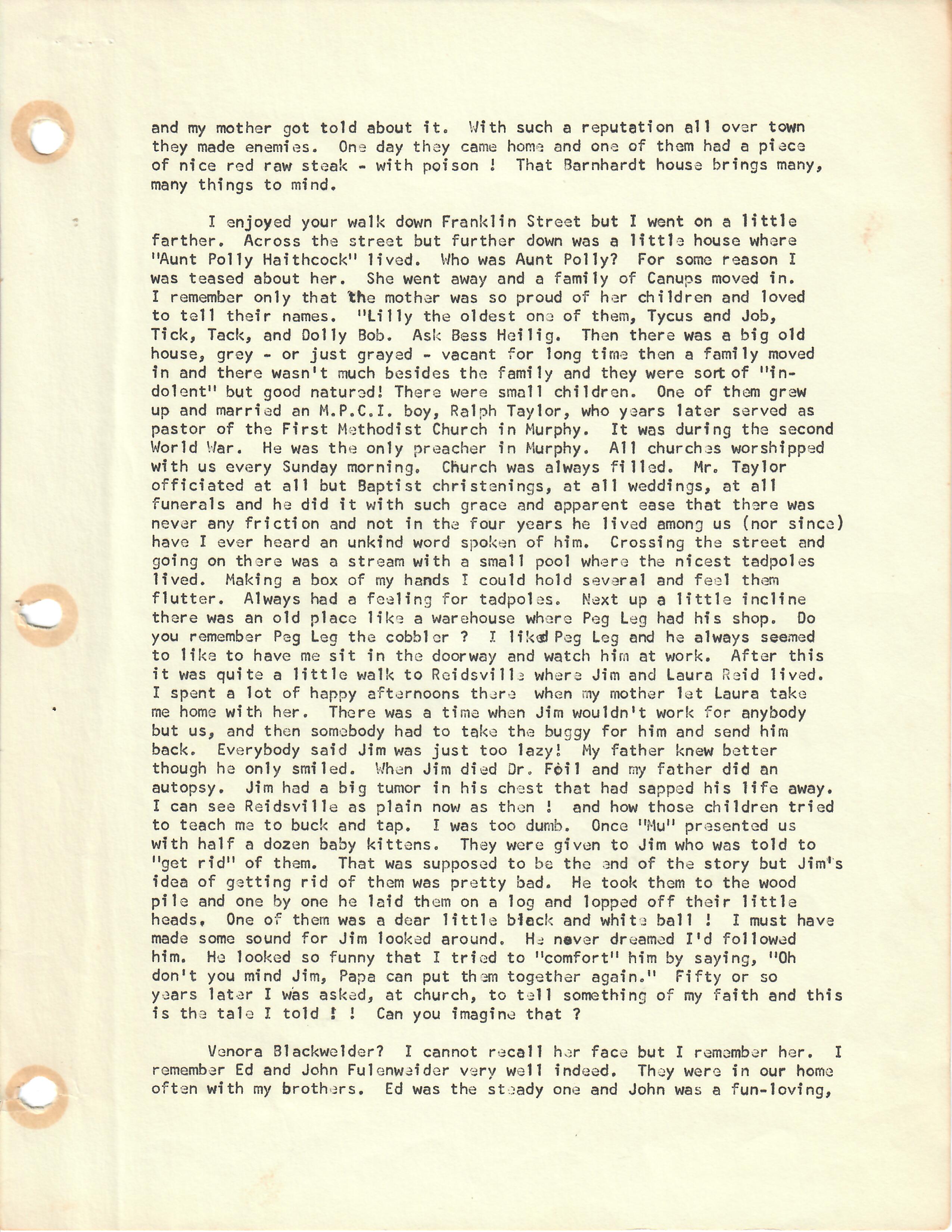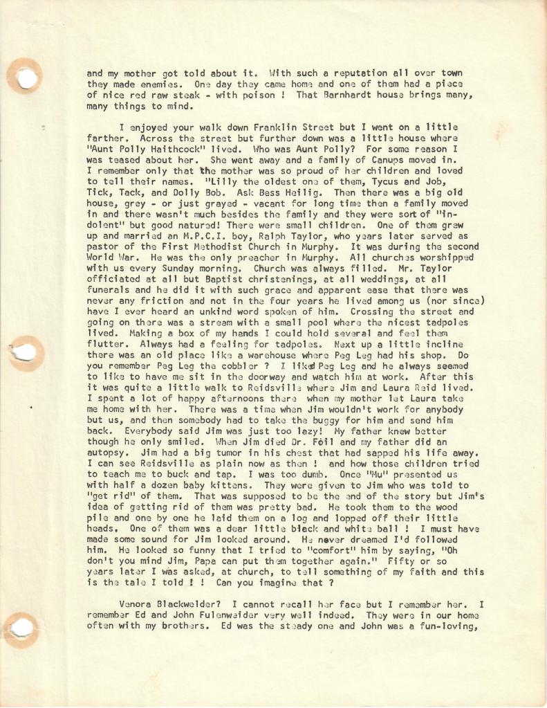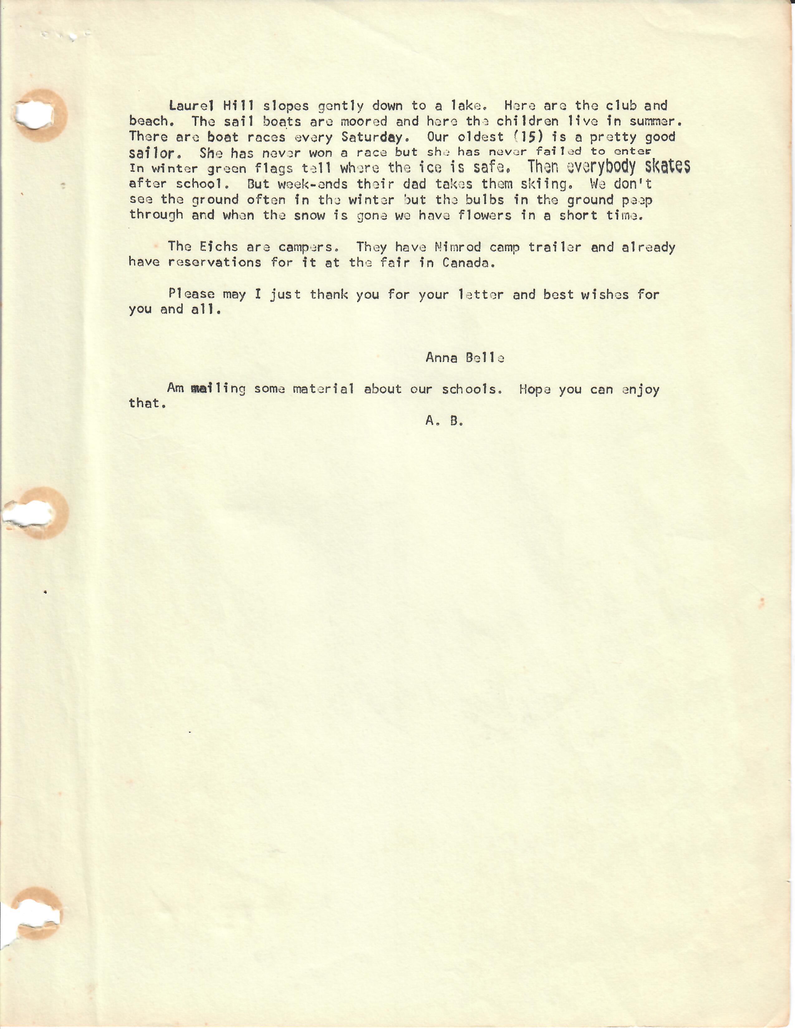Undated letter written by Anna Belle Barrier Axley to educator R. Brown McAllister, c. 1960. Possibly in response to visiting Mount Pleasant for the Mont Amoena historical marker installation celebration on October 1, 1962.