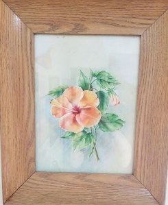 Painting of Hybiscus by Mary Christina Barringer Splude in her 80th year. The original is at the Eastern Cabarrus Historical Society.