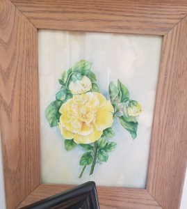 Painting of Yellow Rose by Mary Christina Barringer Splude in her 80th year. The original is at the Eastern Cabarrus Historical Society.