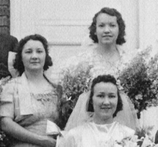 Sisters Pearl Bernhardt Kluttz and Ethel Bernhardt Julian at the wedding of younger sister Catherine Bernhardt Safrit, 1939.