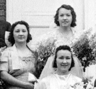 Sisters Pearl Bernhardt Kluttz and Ethel Bernhardt Julian at the wedding of younger sister Catherine Bernhardt Safrit, 1939.
