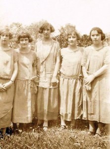 Mont Amoena friends, c, 1926: Margaret Cline, Lala Correll, Dora Earnhardt, Pearl Bernhardt, Ethel Bernhardt.