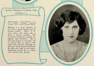 - Rebecca Castor, Lenoir Rhyne College, 1926.