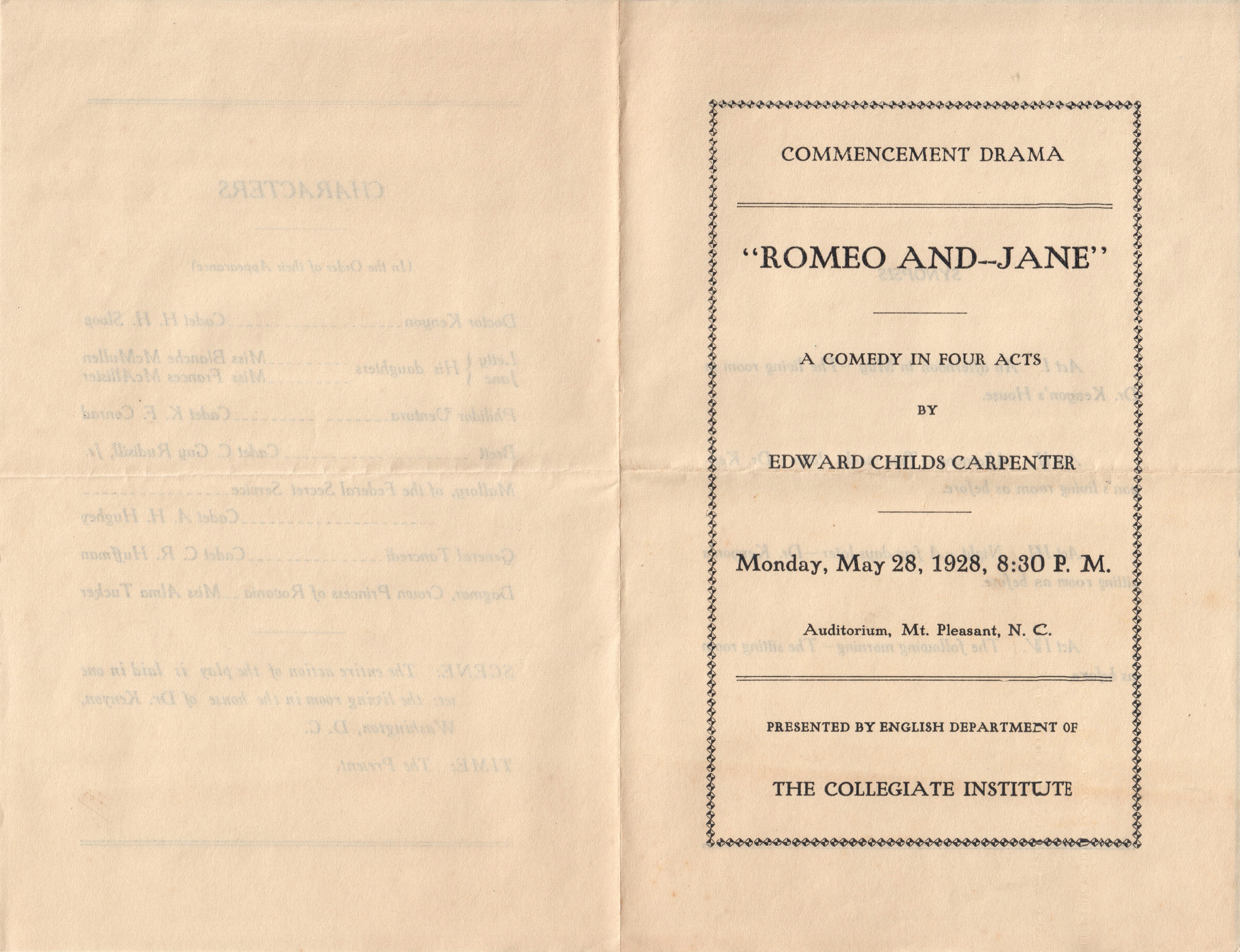 Class Play: “Romeo and-Jane,” 28 May 1928 From the Julia Ethelyn Crabtree McAllister Collection. Share this: Click to email a link to a friend (Opens in new window) Email Click to print (Opens in new window) Print