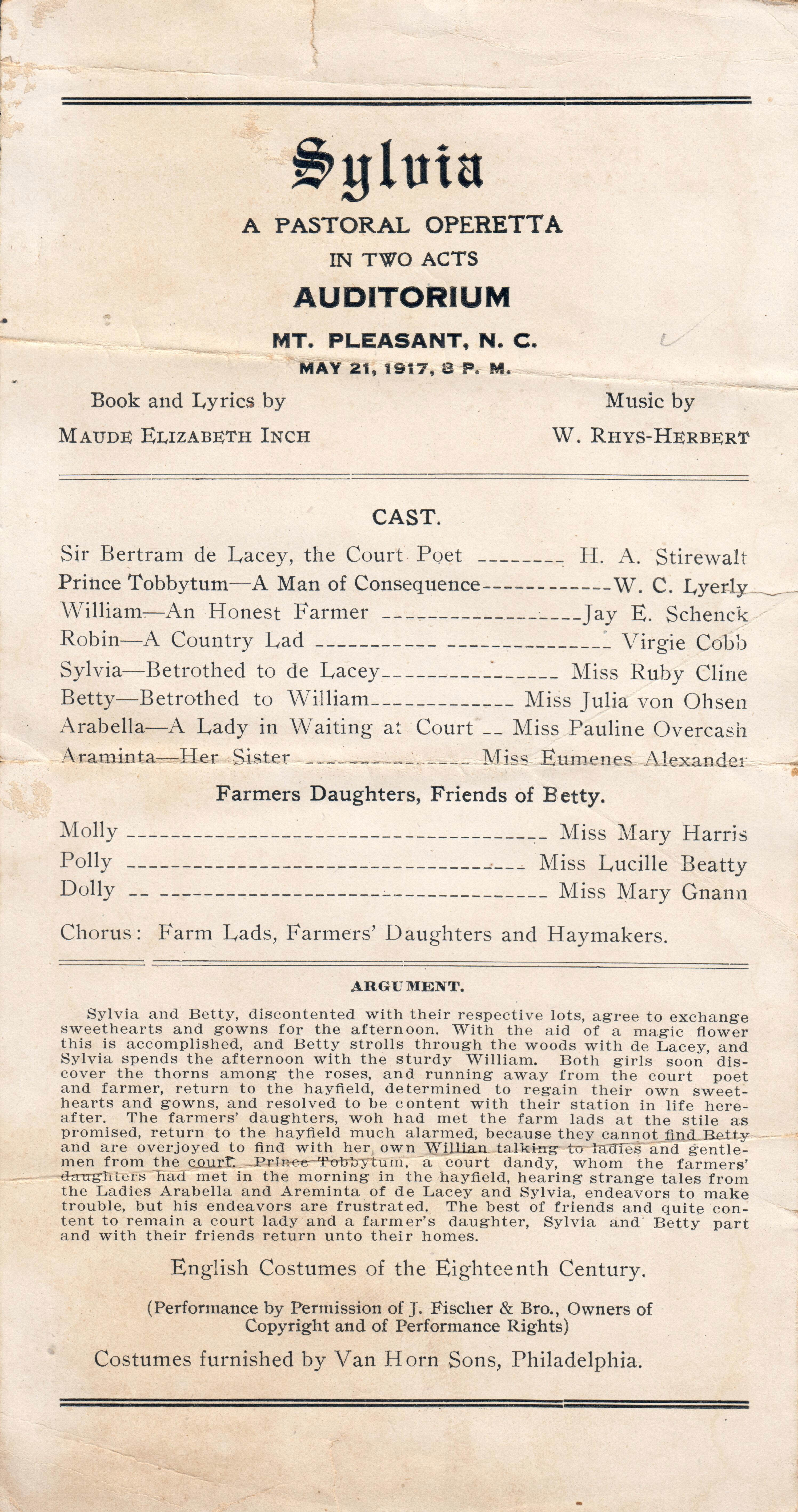 Class Play: “Sylvia,” 21 May 1917 From the Julia Ethelyn Crabtree McAllister Collection. Share this: Click to email a link to a friend (Opens in new window) Email Click to print (Opens in new window) Print