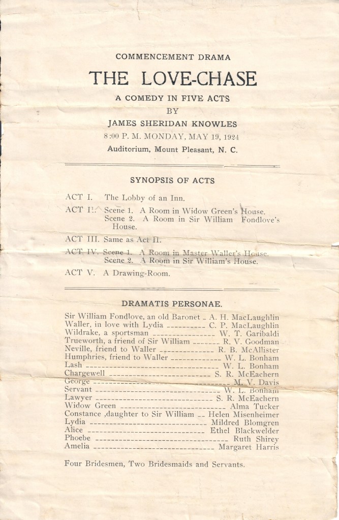 Class Play: The Love-Chase, 19 May 2024 From the Julia Crabtree McAllister collection. Share this: Click to email a link to a friend (Opens in new window) Email Click to print (Opens in new window) Print