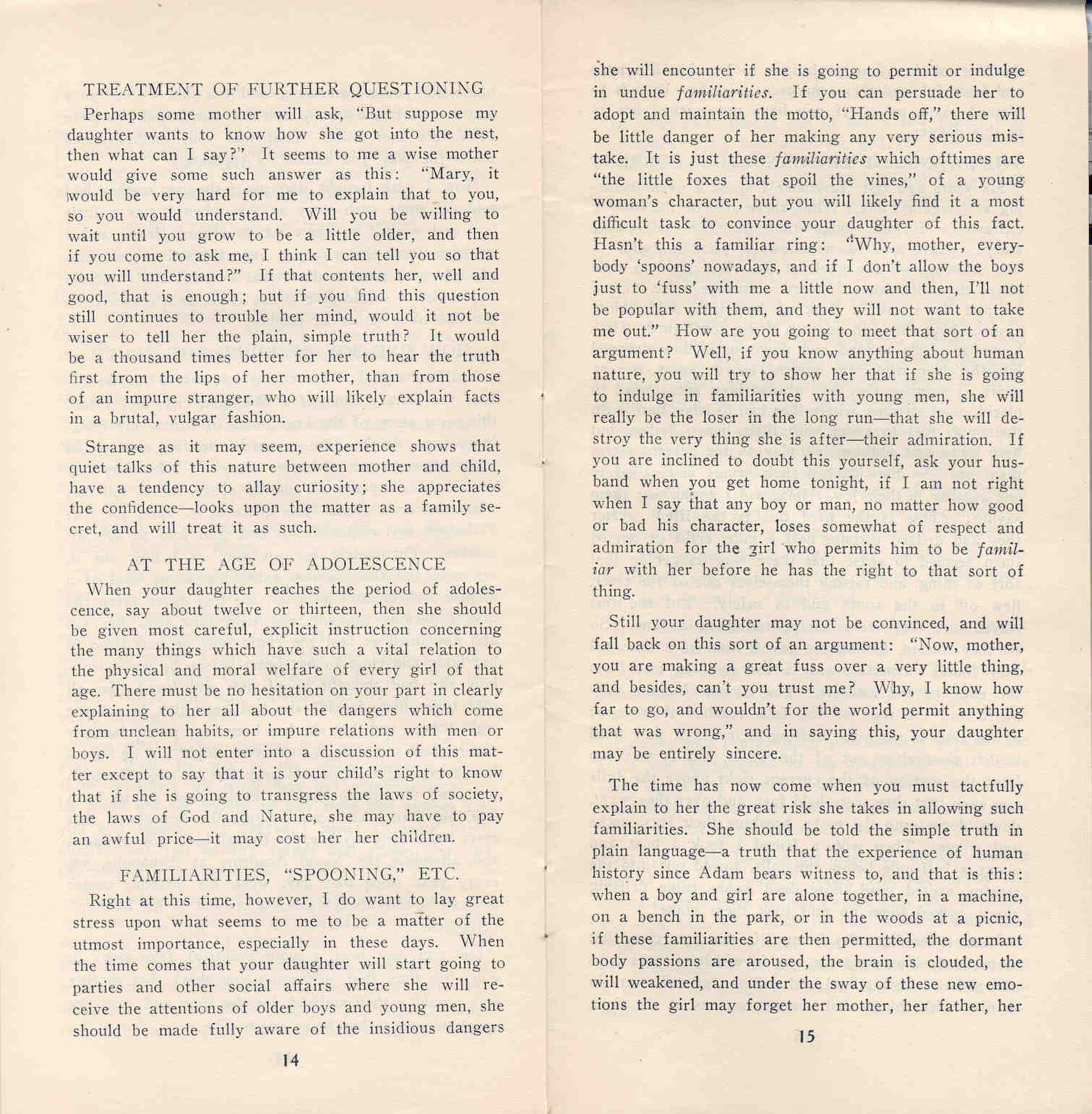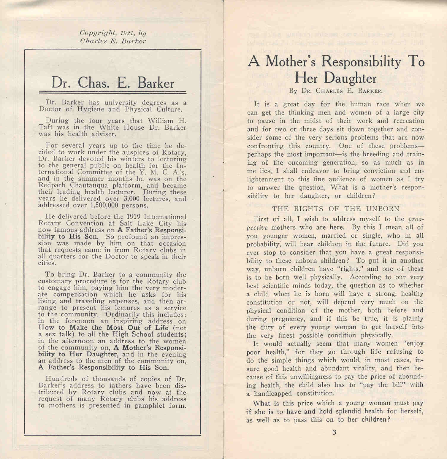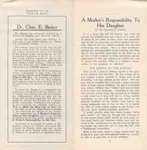 Below is a report on the lectures from The Concord Times (Concord, NC), 14 Dec 1922. Following that are images of a 1921 brochure containing the full lecture for women.