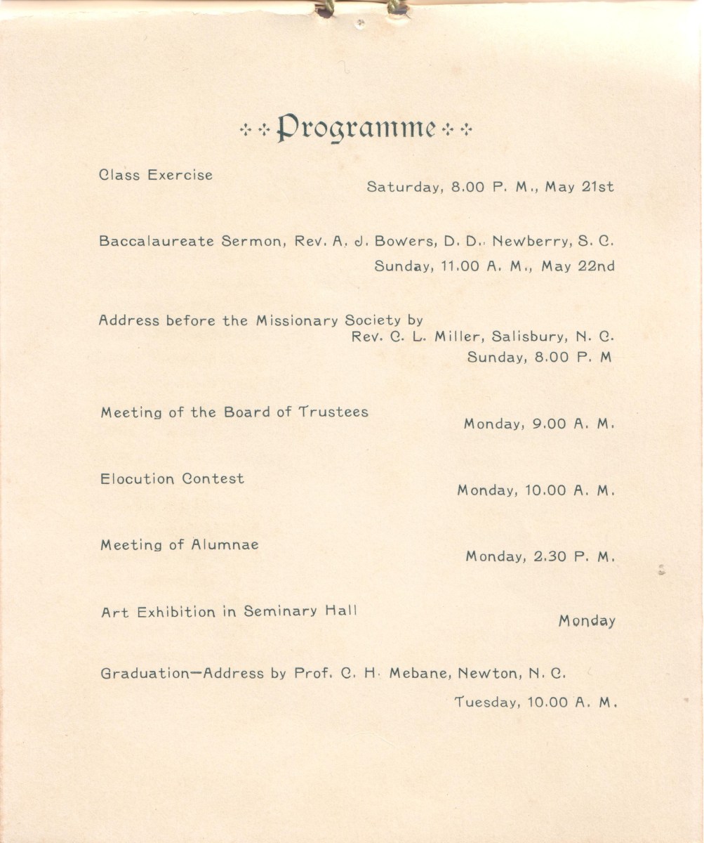 Educating Young Women in Mount Pleasant, NC 1859-1927