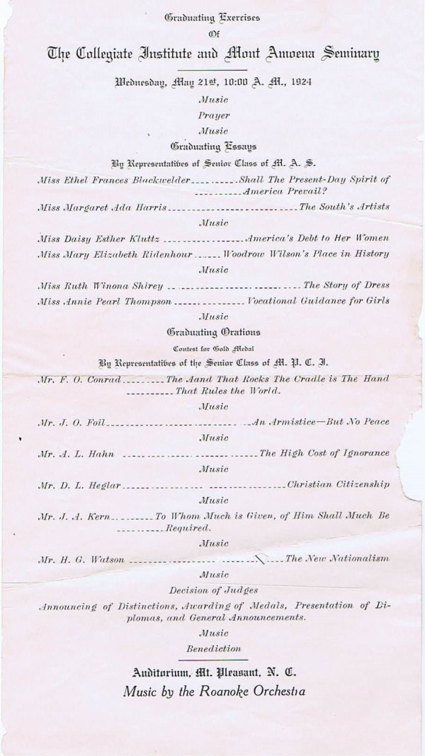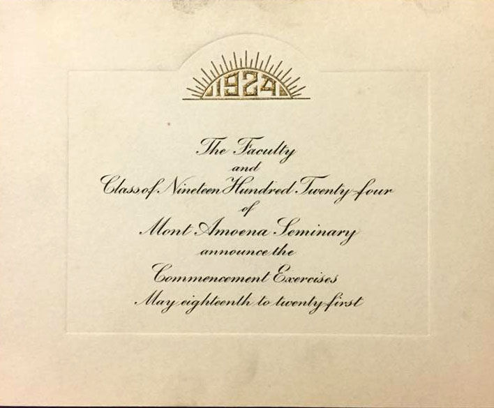 1923-1924 Click to enlarge 1924 MA Commencement Invitation. Courtesy of Amy Gardner Griffin, granddaughter of Margaret Ada Harris. Courtesy of Alan Staton, The Kate Hammill Collection. Share this: Click to email a link to a friend (Opens in new window) Email Click to print (Opens in new window) Print