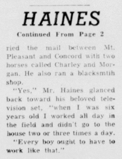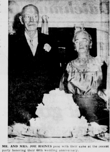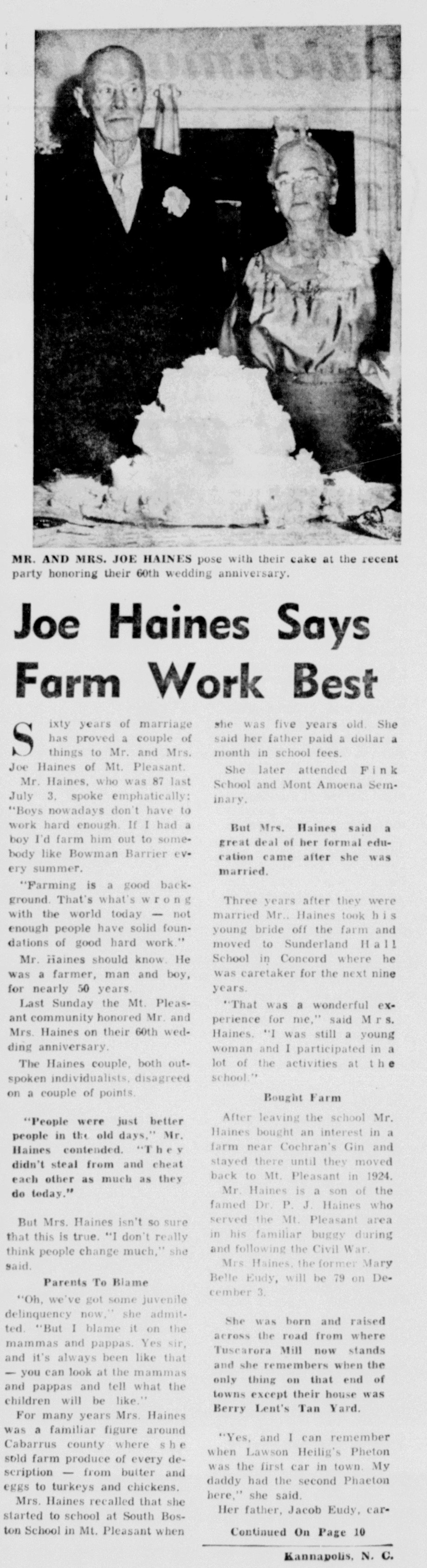 The license obtained some time since but as a secret we learn, has culminated in the marriage on last Sunday of Mr. Joe B. Haines and Miss Mary Bell Eudy, all of No. 8 township.