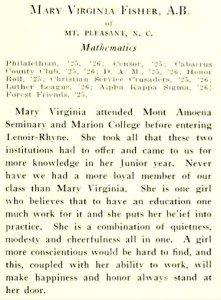 - Mary Virginia Fisher, Lenoir Rhyne College, 1925.