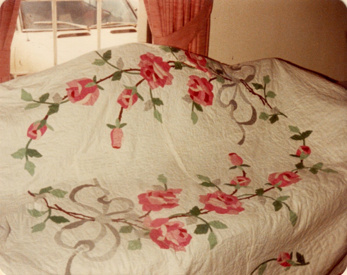 Quilt, sisters Mittie Han Ritchie, Bessie Cline, Mrs. John Cline Published March 27, 2025 at 2622 × 2079 in Hahn, Mittie Elizabeth ← Previous Rose Quilt created for Ruth Cress by Mittie Hahn Ritchie, Bessie Fink Cline, and Mrs. Jake Cline, c. 1956.