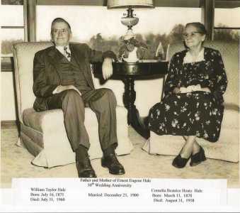 Cornelia Beatrice Hentz Hale and husband William Taylor Hale on their 50th Anniversary, 25 Dec 1950. Photo: pgphsm1974, http://www.Ancestry.com.
