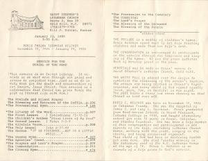 She was a life member of St. Stephens Lutheran Church, a member of the LCW, a leader in the Light Brigade children’s church group, and a member of Extension Homemakers.