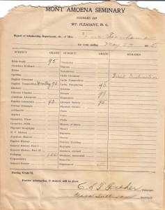 Mont Amoena report card, 27 May, 1925. From the Doris Isenhour Melchor Collection. Courtesy of Carla Melchor Ashton. Click to enlarge.
