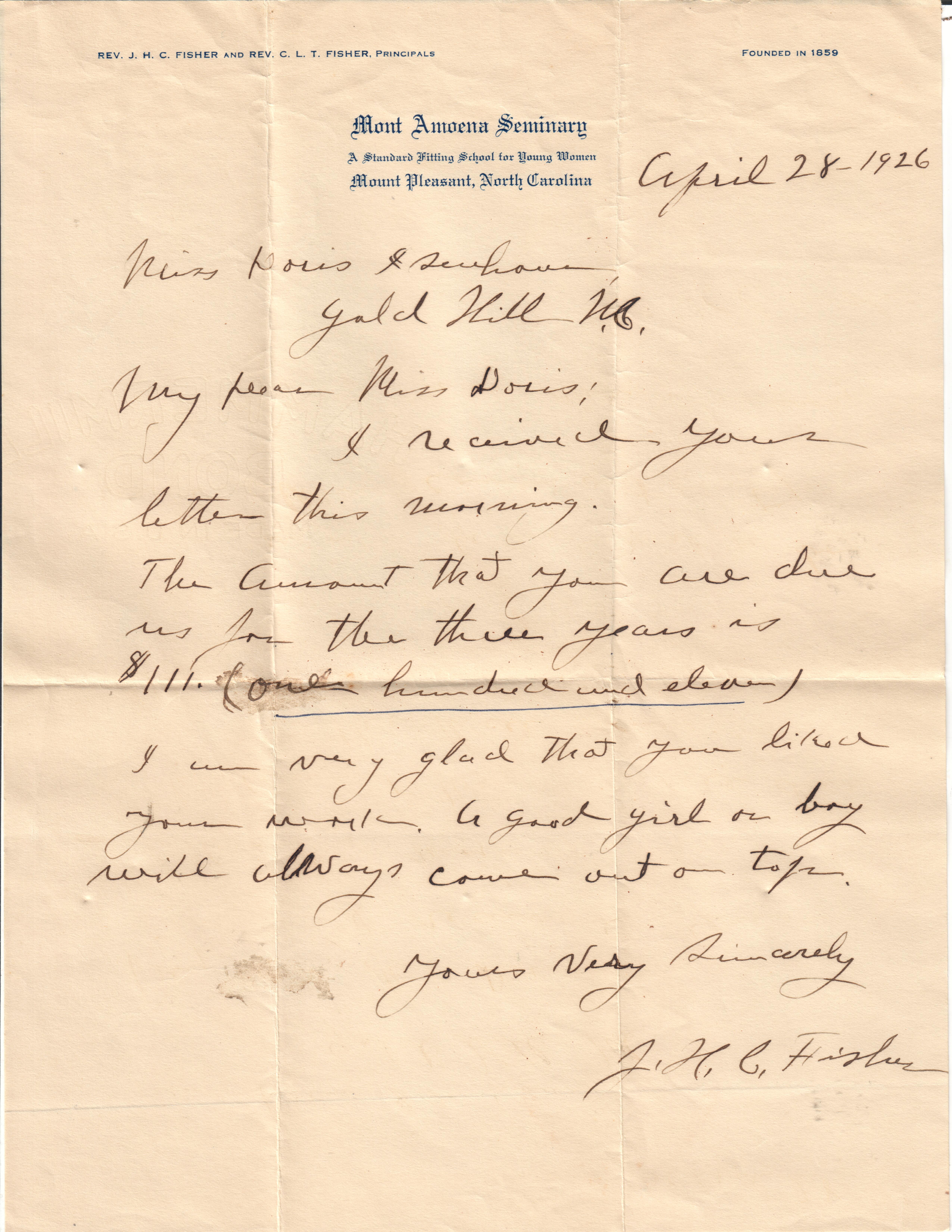 Educating Young Women in Mount Pleasant, NC 1859-1927