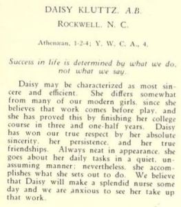 Miss Kluttz attended Mont Amoena Seminary and was a graduate of Catawba College. She was a member of Boger Home Extension Club and was a retired practical nurse. A Cabarrus County native, Miss Kluttz was born Jan. 29, 1901 to the late Rufus J. Kluttz and Laura Cruse Kluttz.