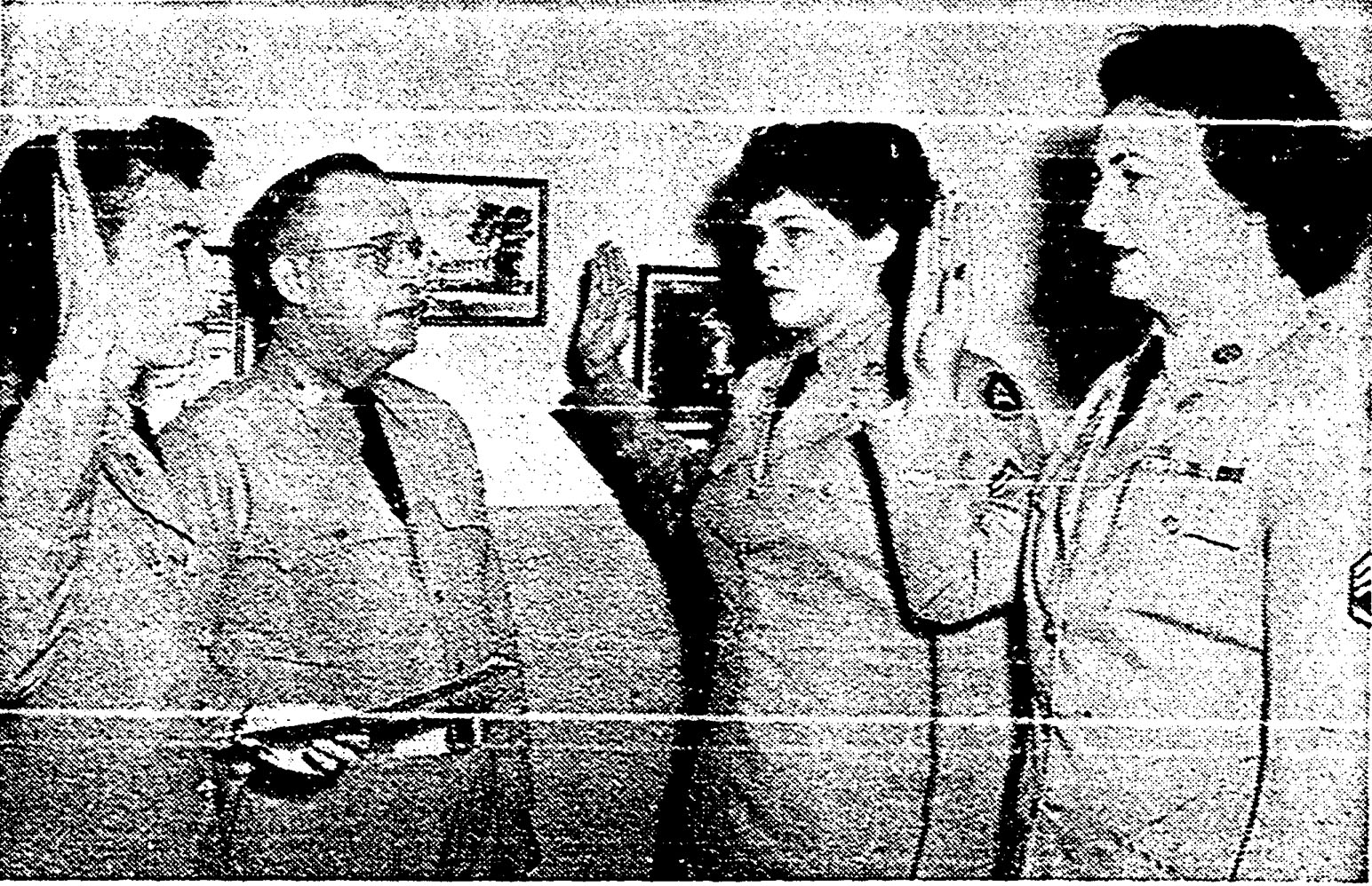 Photo 5: The State (Columbia, SC) 7 Nov 1950, p. 26. Two WACs stationed at Fort Jackson, one of them a South Carolinian, have re-enlisted for tours of duty. they are shown as they took their oaths of enlistment. In the picture are, left to right, Capt. Martha S. Tolbert of Atlandta, Ga., commanding officer of Section 5, 341st Area Service unit (administering the oath); Lieut. col. Leo S. Jobe of Matoon, Ill., headquarters commandant at Fort Jackson; Cpl. Margaret L. Martin of Detroit, Mich., and Sgt. Gladys M. McManus of Sumter. Sergeant McManus is unit supply sergeant and Corporal Martin is company clerk of the WAC detachment at Fort Jackson. (U. S. Army Photo.)
