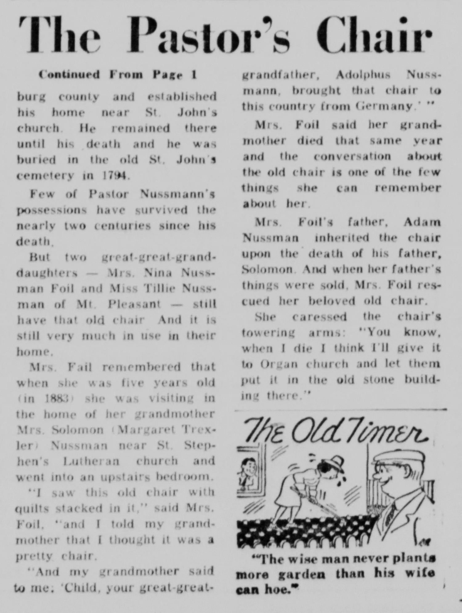 Born April 13, 1889 in Mt. Pleasant, Miss Neussman was the daughter of the late Adam Neussman and Mrs. Ellen Kluttz Neussman. She was a retired seamstress and a life-long member of the Lutheran Church of the Holy Trinity. She graduated from Mt. Amoena Seminary in 1909.