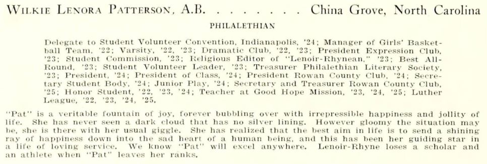 Patterson, Wilkie Lenora, Lenoir Rhyne -2 Published June 4, 2020 at 966 × 327 in Patterson, Wilkie Lenora Next → Wilkie Patterson, Lenoir-Rhyne College (Hickory, NC), Hacawa yearbook, 1925.