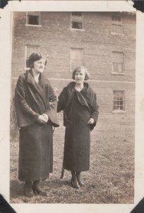 Teachers of Voice and Music, Mabel Rudisill (left) and Helen Misenheimer in front of Mont Amoena, c. 1925.