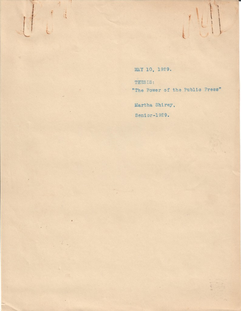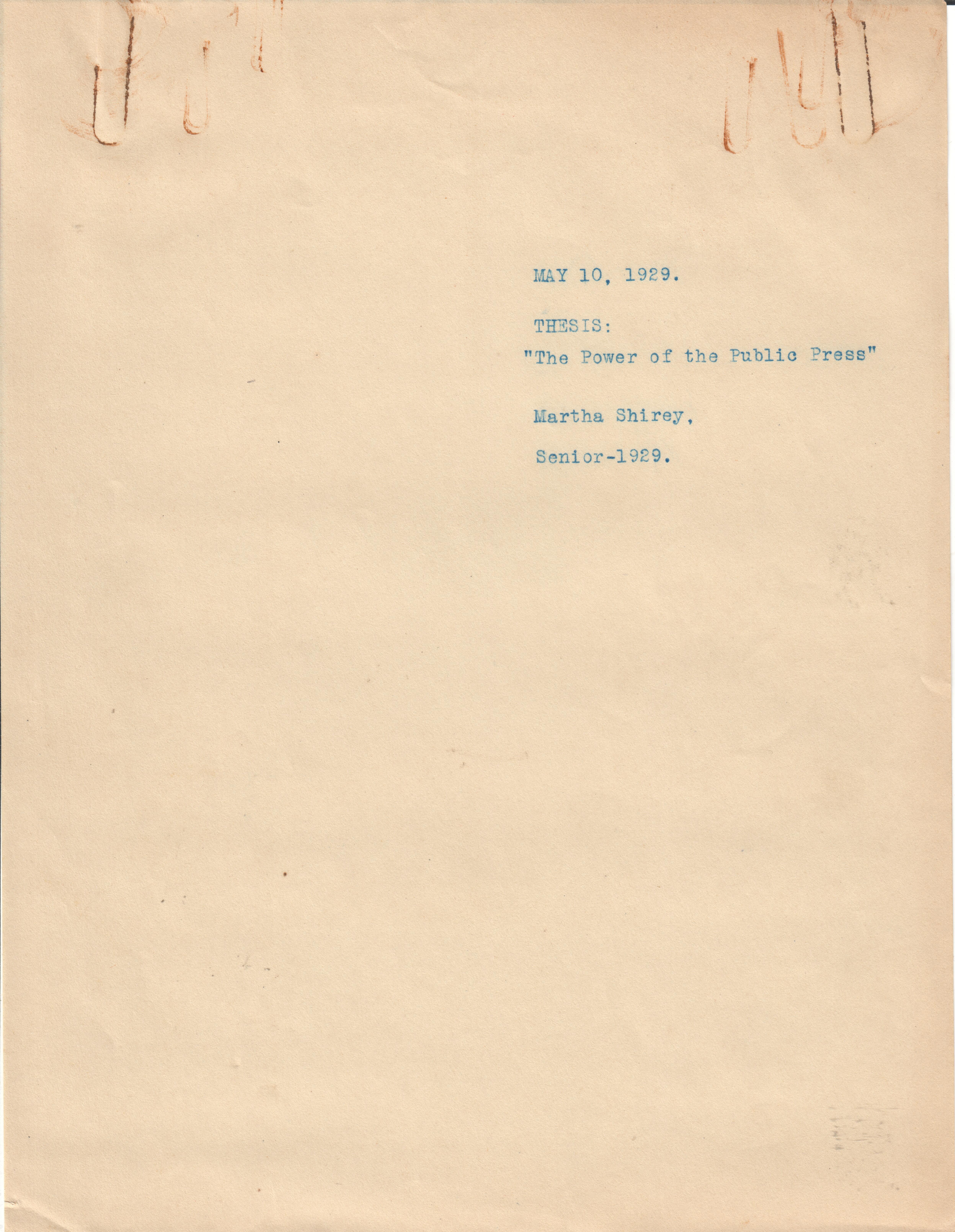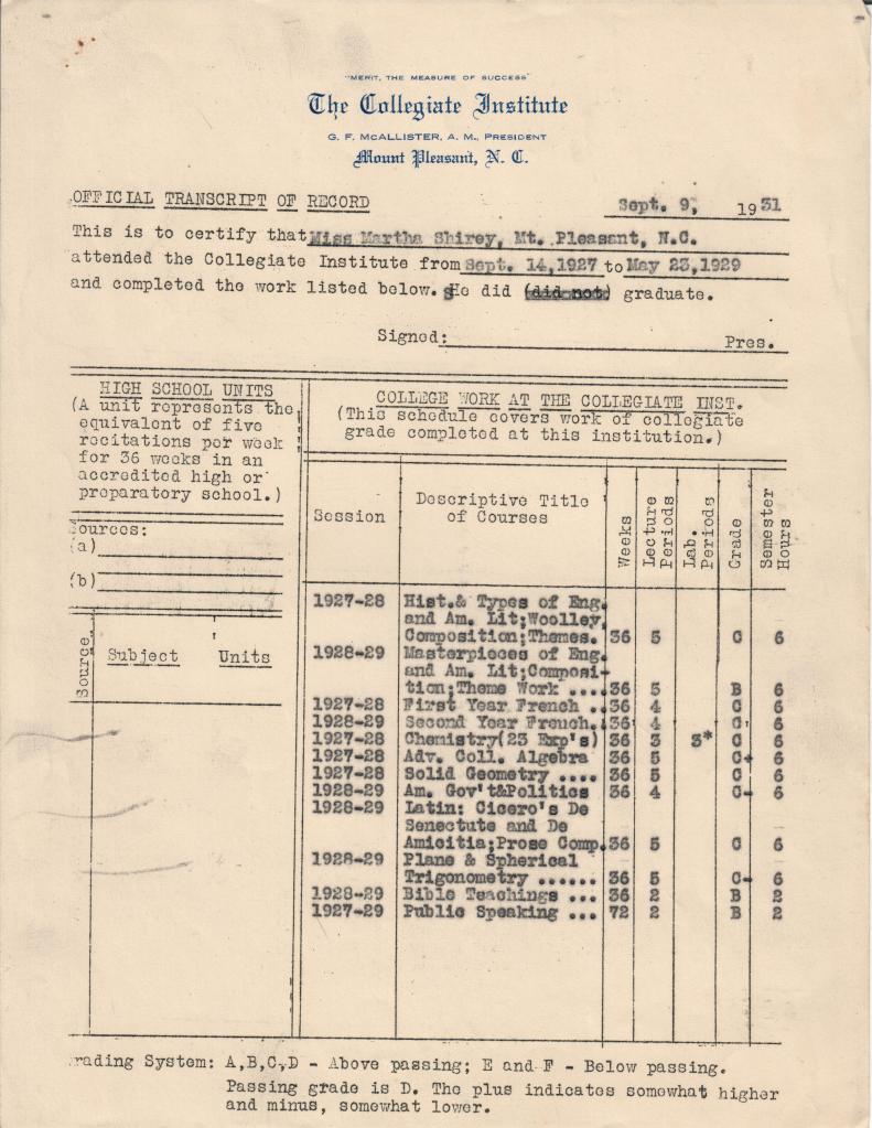 M.P.C.I. Documents: Martha Cook Shirey M.P.C.I. Transcript 1927-1929 ____________ M.P.C.I. Graduation Thesis, 10 May 1929. Share this: Email a link to a friend (Opens in new window) Email Print (Opens in new window) Print