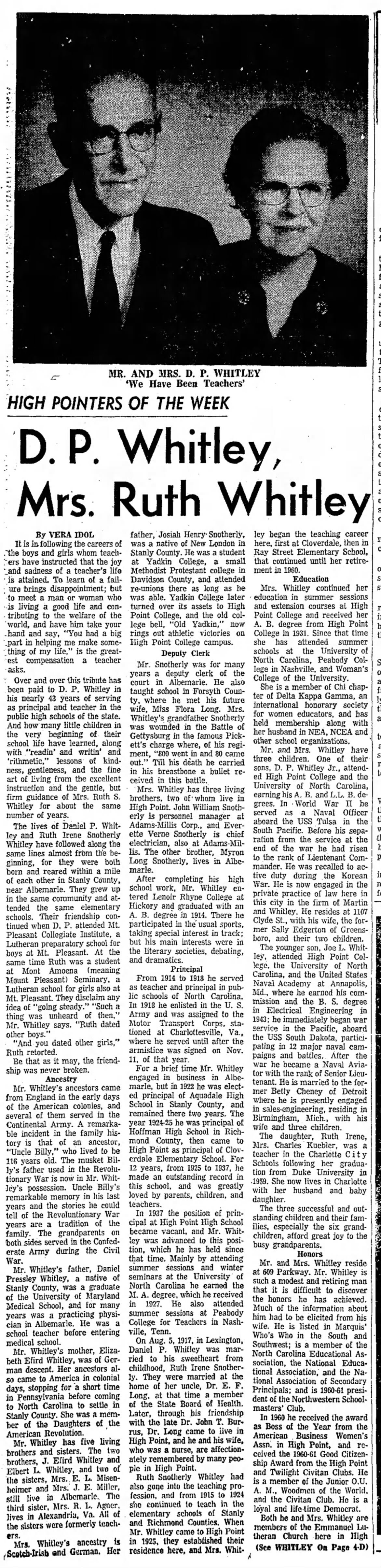 The Highpoint Enterprise (High Point, NC), June 4, 1961, p. 3D.