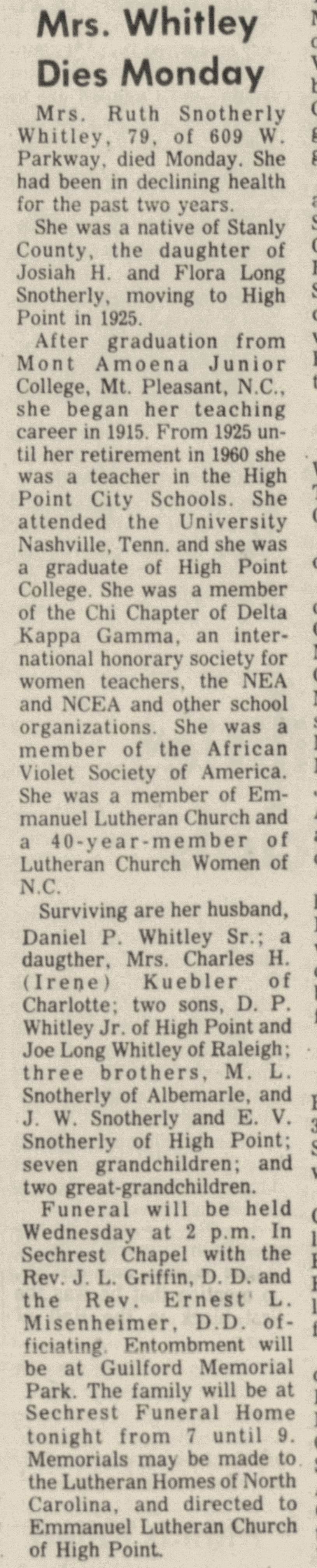 Death: 12 Aug 1974, High Point, Guilford County, North Carolina, USA