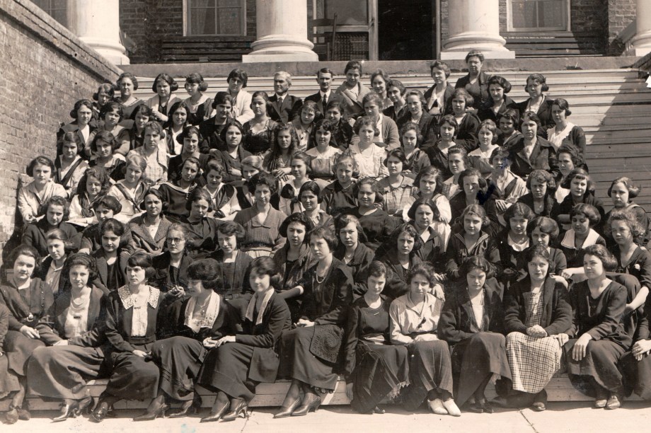 - Mont Amoena Class of 1921. Top, L to R: Ruth Cress, Beulah Cauble, unidentified, Omey McAnulty, unidentified, Pearl Fisher. Center, L to R: Pearl Archer, Celia Tucker, Mary Belle Umberger, Mable McAllister. Bottom, L to R: Octa Vayne Earnhardt, Juanita Peacock, Thelma Suther, Mary Belle Smith, Ruth James. Photo courtesy of LeAnna Dunlap.